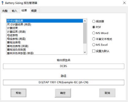 ETAP蓄电池放电分析程序验证一个现有的蓄电池的性能。该程序计算一个工作周期内蓄电池放电时的电池容量,电压,电流和输出功率。电池工作周期可从负荷电流总和或潮流计算中获得。当蓄电池工作周期由潮流计算中获得时,蓄电池放电分析程序还在报告中提供母线电压、支路功率和电池输出结果。在蓄电池容量计算中用到几个校正因数,如温度,老化和初始容量,在蓄电池放电计算中也要考虑这些因数。