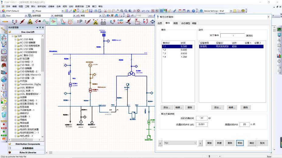 • 暂态稳定分析 • 发电机启动分析 • 电机加速分析
