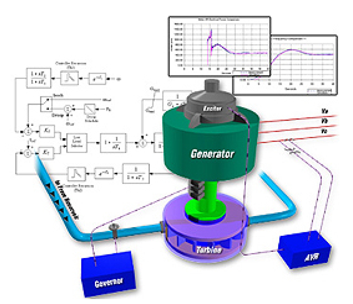 使用全频率相关的机器和网络模型、发电机启动计算程序分析冷起动发电机在正常和紧急状态的条件。整个发电机启动过程建模,包括自动控制继电器exciters-AVR仿真和动态行为,涡轮/发动机和电力系统稳定器(PSS)。发电机启动程序可以用来模拟起动发电机的详细动态响应,测试紧急负载包括电机、MOV和其他连接到发电机的负载的暂态稳态情况。