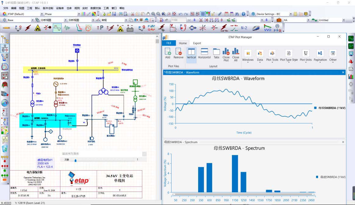 谐波的危害十分严重—谐波使电能的生产、传输和使用的效率降低,使电气设备过热、产生振动和噪声,并使绝缘老化,使用寿命缩短,甚至发生故障或烧毁。谐波可引起电力系统局部并联谐振或串联谐振,使谐波含量放大,造成电容器等设备烧毁。谐波还会引起继电保护和自动装置误动作,使电能计量出现混乱。对于电力系统外部,谐波对通信设备和电子设备会产生严重干扰。ETAP谐波分析模块严格遵循IEEE 519 ANSI/IEEE 399 IEEE 141标准,可以模拟谐波电压源和电流源,确定谐波问题,减少不必要的跳闸,设计测试滤波器,报告谐波电压电流畸变越限。用详细的谐波模型和电力系统元件频率模型进行全面的潮流分析和频率扫描计算。图形化显示结果,包括谐波次数、谐波频谱画图和谐波波形画图,以及水晶报告。