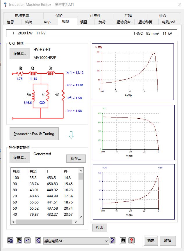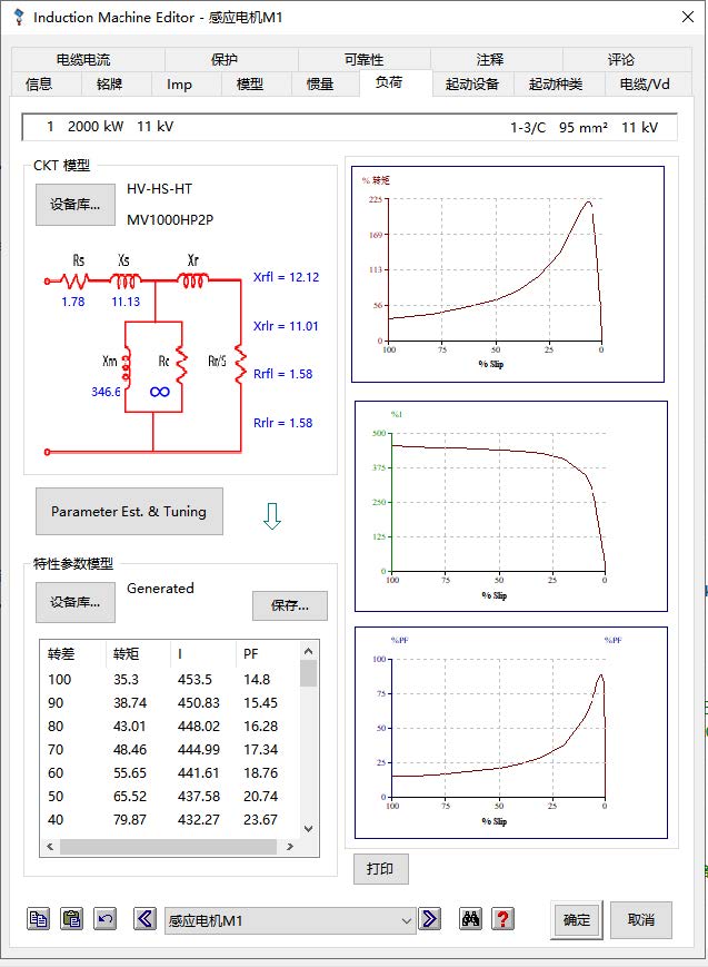 动态起动计算认为电动机是一个阻抗随转速变化的模型,在整个起动过程中电动机有电流变化。动态起动计算还可以计算电动机滑差,判断电动机能否成功起动。