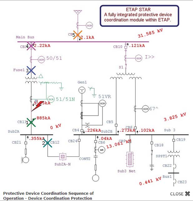 STAR-动作序列操作提供了一个准确的和真实的动作时间的保护装置,例如继电器,熔断器,断路器,跳闸装置,接触器等和状态,计算为基础的各保护装置的全系统的了解它的设置,时间电流特性,并指定故障位置和类型的联动装置。