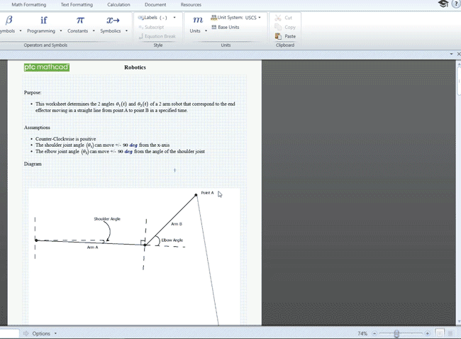 PTC Mathcad Prime 7 使您能够将工作表保存为 PDF 格式。此外,还增强了缩放、滚动和聚焦功能,以改进 Mathcad 工作表的可读性、查看和编辑功能。我们还增强了主要栅格线的功能,现在可以在文档菜单中打开或关闭栅格线。